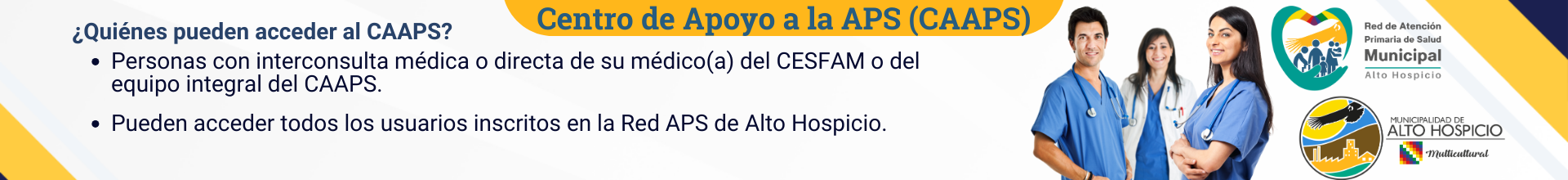 Coordinador, Centro de Apoyo a la Atención Primaria de Salud, CAAPS.Carlos Cossio BrunaProfesor de Educación Física Equipo de Salud, Centro de Apoyo a la Atención Primaria de Salud, CAAPS.Nuestros ServiciosDirecciónAv. Teniente Hernán Merino Correa 3034Horarios de FuncionamientoLunes a Viernes08:00 hrs a 17:00 hrs.Lunes / Miércoles / Viernes17:00 hrs a 20:00 hrs.Teléfono Atención SOME Grupos Prioritarios+57 (2) 583468+57 (2) 374488