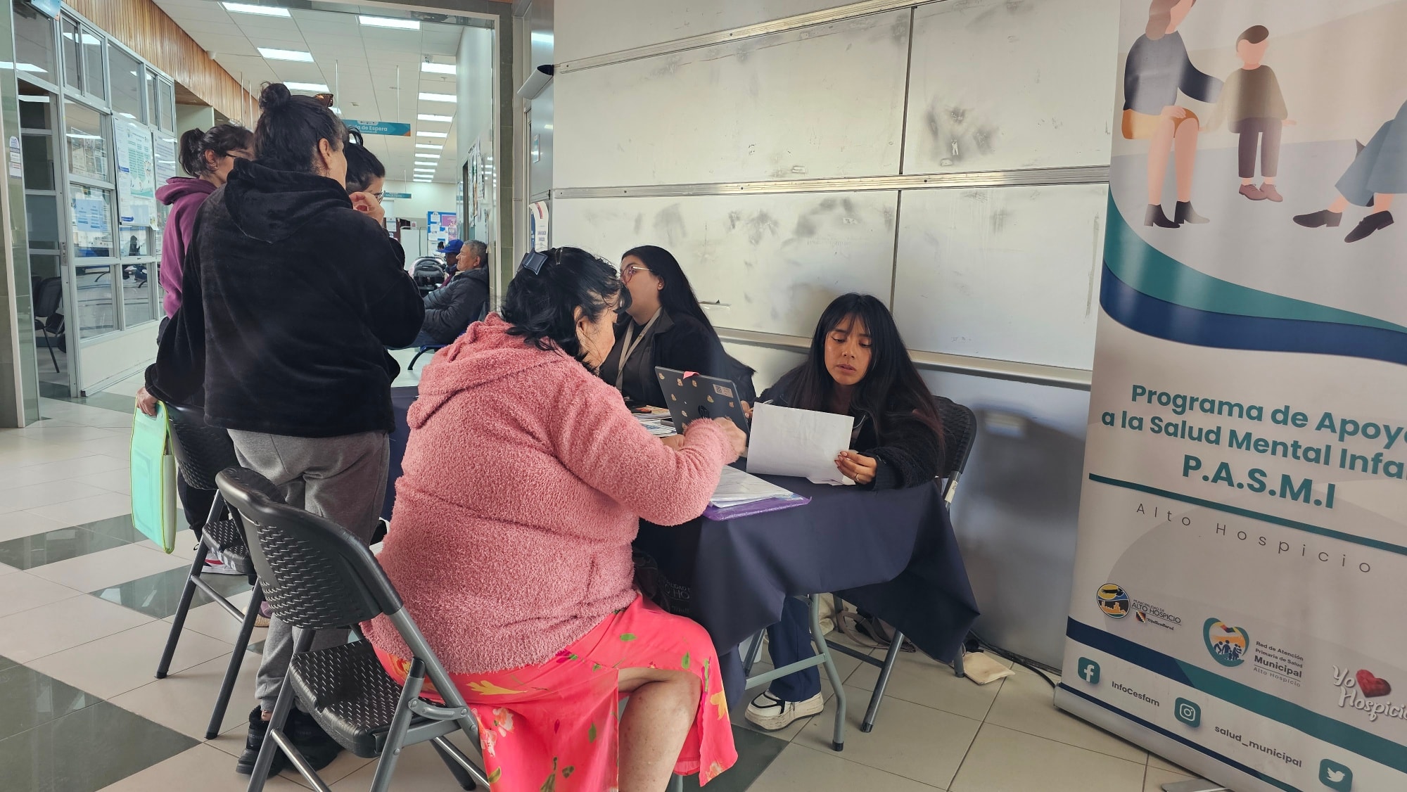 El equipo de trabajadoras sociales del Programa PASMI se encuentra en el CESFAM Dr. Héctor Reyno, informando a la comunidad sobre las atenciones que brinda a niños y niñas entre los 3 y 9 años.