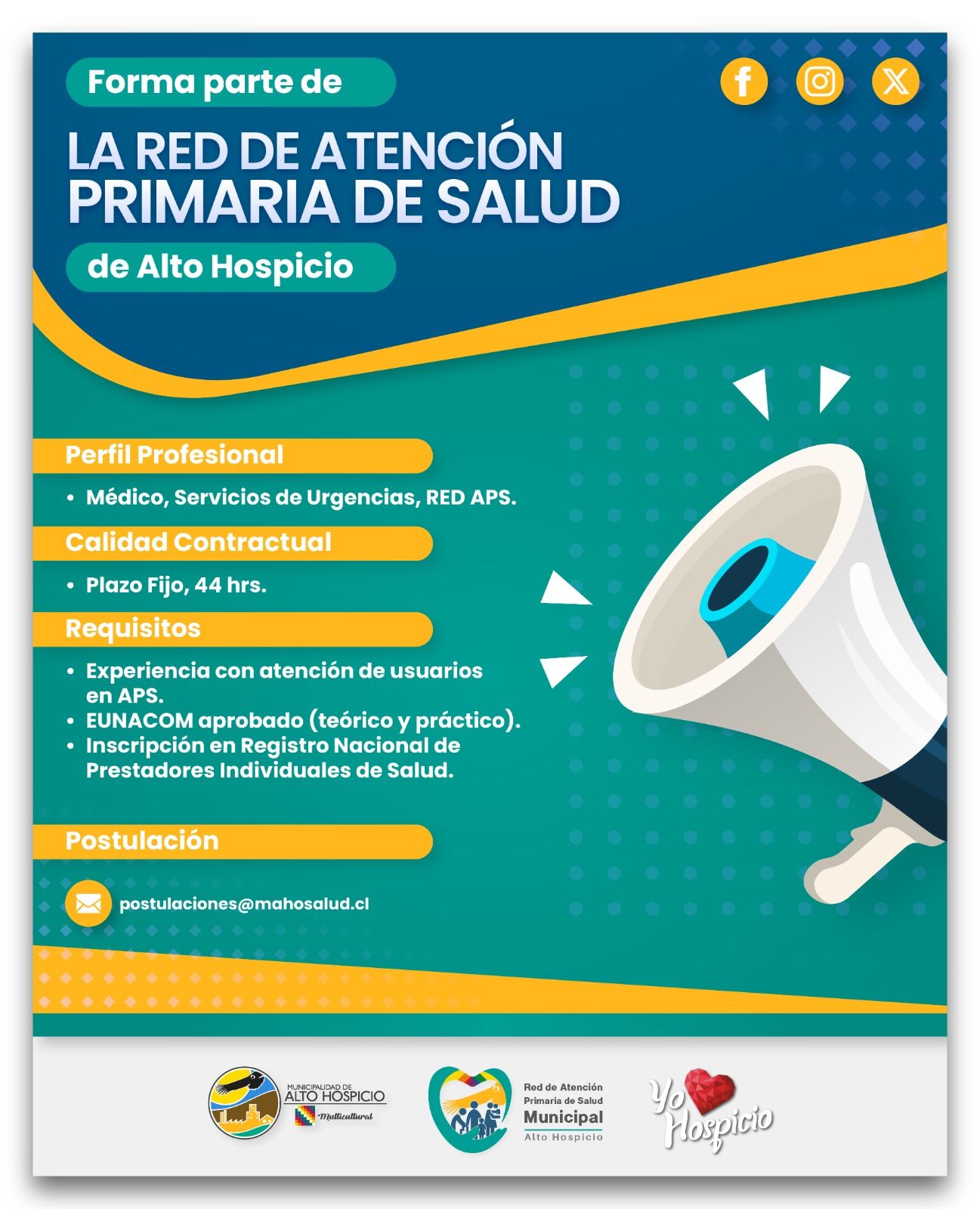 Las personas interesadas deben enviar sus antecedentes al correo postulaciones@mahosalud.cl.